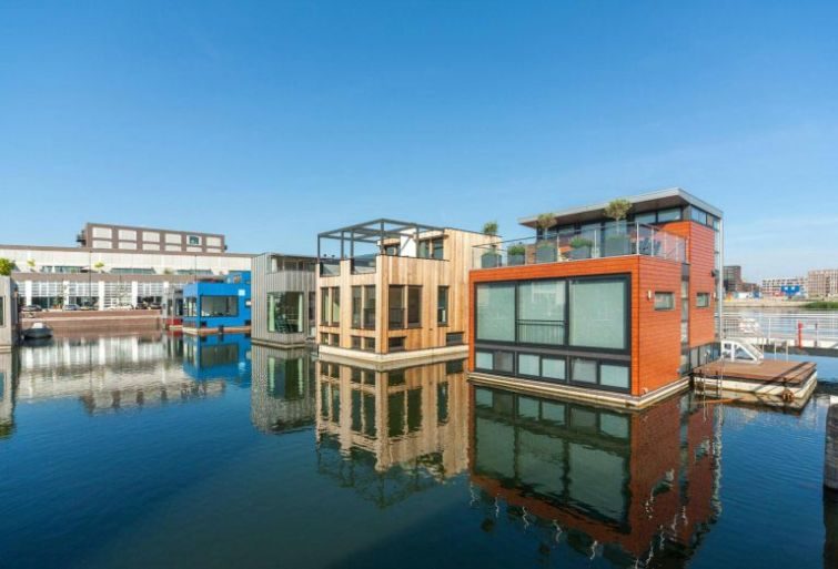 Современные плавучие дома в Амстердаме