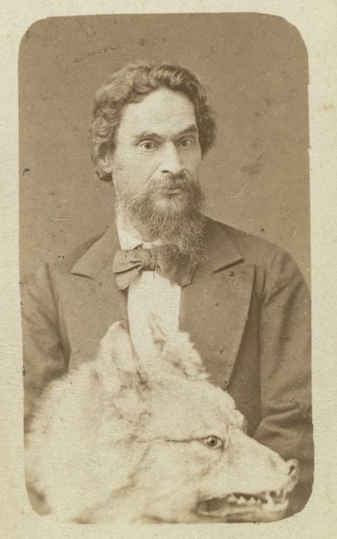 Знаменский, начальник полиции в Минусинске, с чучелом из волчьей головы.