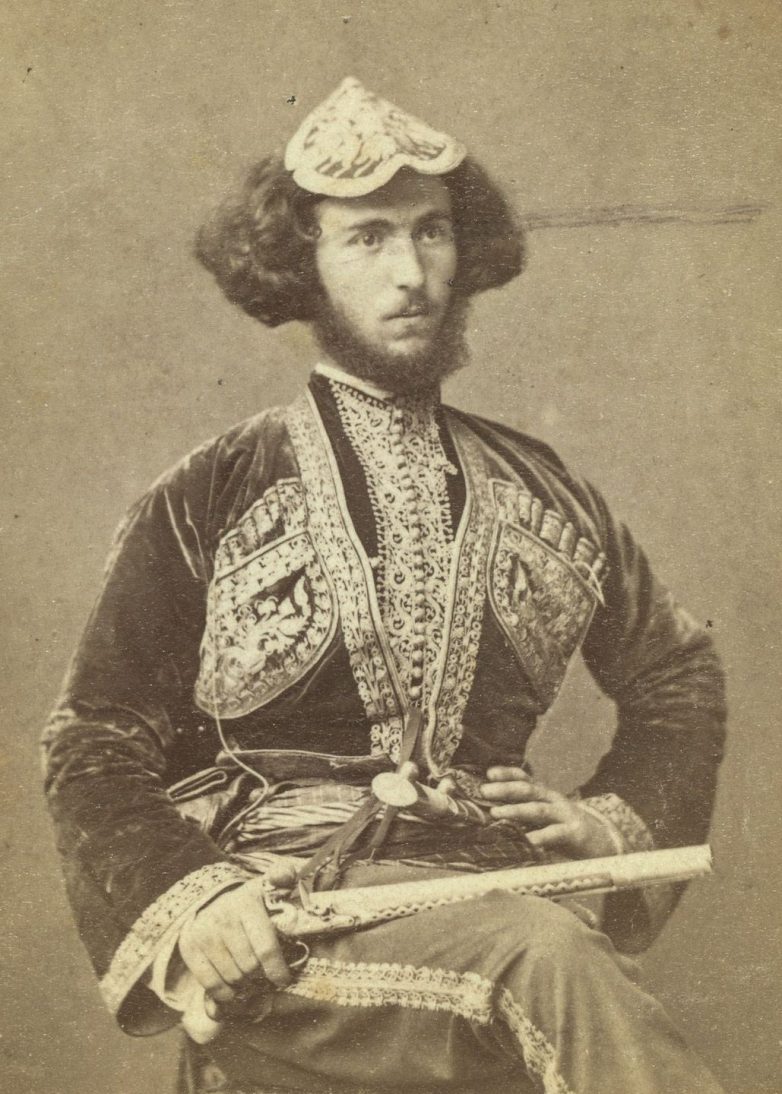 Тут Вы не правы. Экспозиция в 10-30 минут велась при дагеротипировании и давала ЗЕРКАЛЬНОЕ изображение, а здесь, судя по орденам и кинжалам, изображение прямое, так что это-обычное фото с выдержкой в пару секунд.
