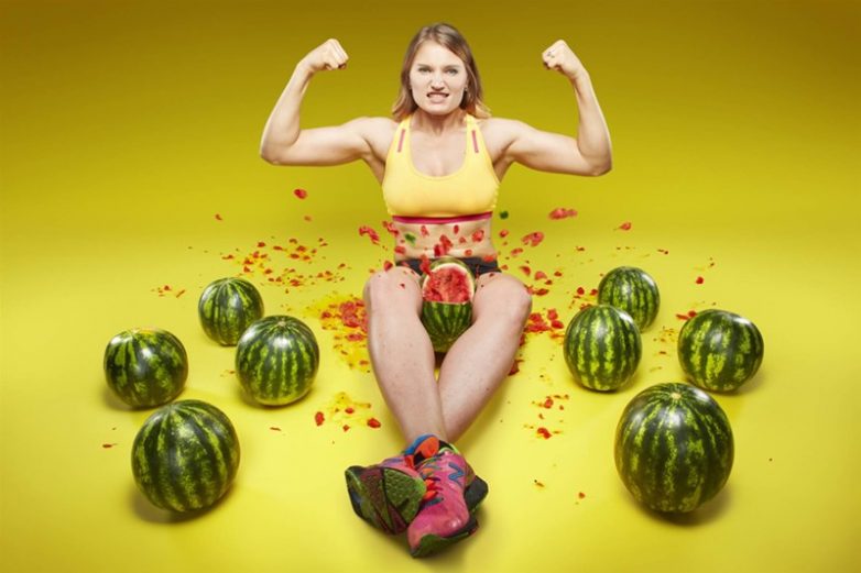 Украинка Ольга Лящук быстрее всех раздавливает три арбуза бедрами — за 14,65 секунд