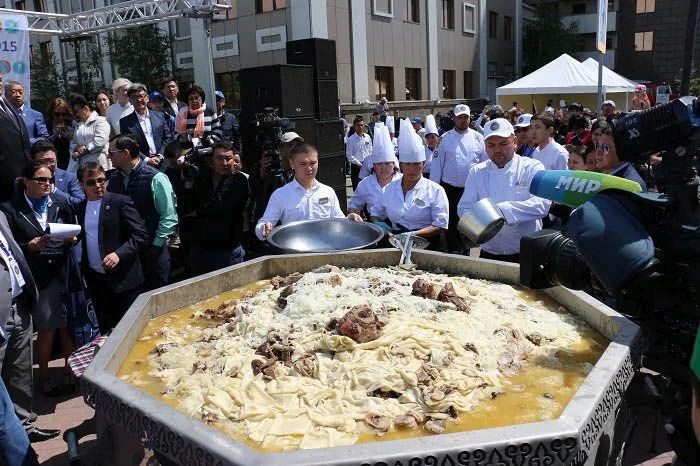 В честь празднования Дня столицы в Астане приготовили самую большую порцию бешбармака в мире. Общий вес национального блюда составил 736,5 кг.