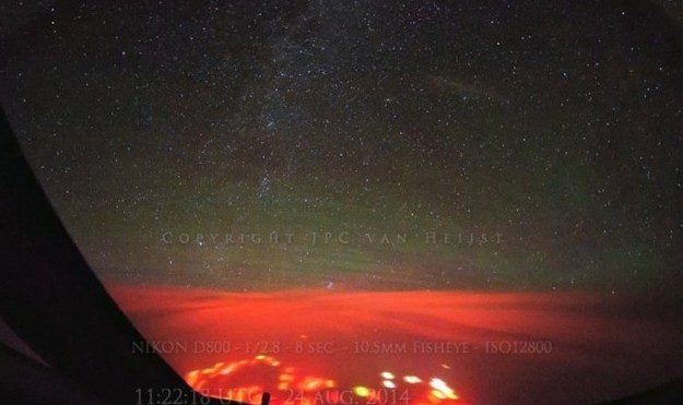 Сообщение об аномальном явлении выложил в интернет (сайт pbase.com) пилот голландского Боинга 747, следовавшего 24 августа 2014 года из Гонконга в Анкоридж на Аляске. Пилот назвался JPC van Heijst.Так вот, по свидетельству этого самого JPC van Heijst, примерно через 5 часов полета с высоты более 10 тысяч метров он заметил в океане нечто такое, чего за всю свою летную практику никогда не видел. Прямо по курсу — к югу от Камчатки — на горизонте вспыхнуло красное свечение. Оно походило на грозовые разряды, но было направлено вертикально вверх. К тому же никакой облачности по курсу не наблюдалось.