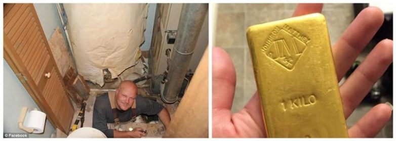Недавно сотрудник водопроводной компании из Калгари, ремонтируя ванную комнату заказчикам, обнаружил торчащий из пола блестящий кусок металла. При ближайшем рассмотрении это оказался золотой слиток весом 1 килограмм. Стоимость найденного золота, по приблизительным подсчетам, составляла около 50 тысяч долларов. По мнению экспертов, изначально клад был замурован в пол, но, поскольку рядом стояла ванна джакузи, ее вибрации разрушили схрон, и золото показалось на поверхности. Как честный человек, водопроводчик отдал золотой кирпич хозяевам.