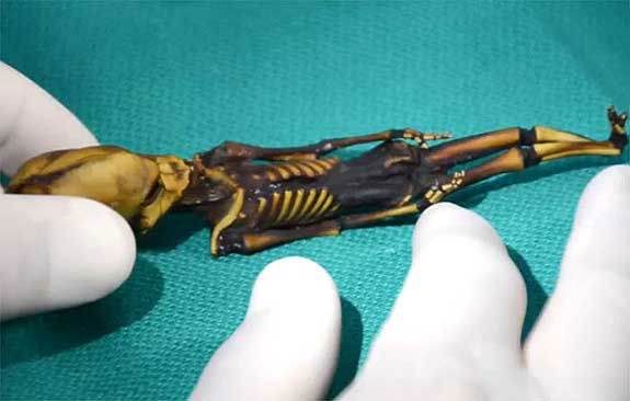 Странный скелет с твердыми зубами, выпуклой головой и чешуйчатой кожей заставил многих поверить в то, что на Землю попал пришелец.