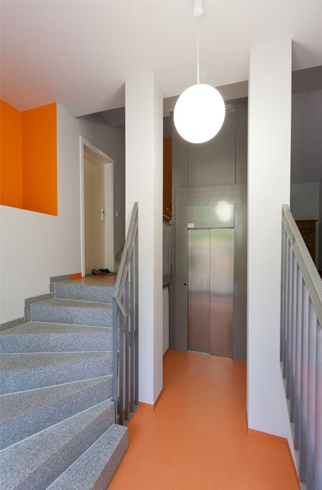 В соответствии с масштабными мероприятиями по реконструкции, проводимыми в Лейнфельде, панельное здание было уменьшено в размерах. Вместо одиннадцати подъездов оставили только шесть