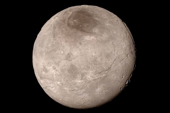 Спутник Плутона Харон диаметром всего 1200 километров (т. е. наполовину меньше Плутона). Неудивительно, что астрономы ожидали увидеть обычное небольшое небесное тело с рядом кратеров. Но корабль «Новые горизонты» показал изображение тускло-красного спутника с запутанной системой каньонов, гор и свидетельством оползней.