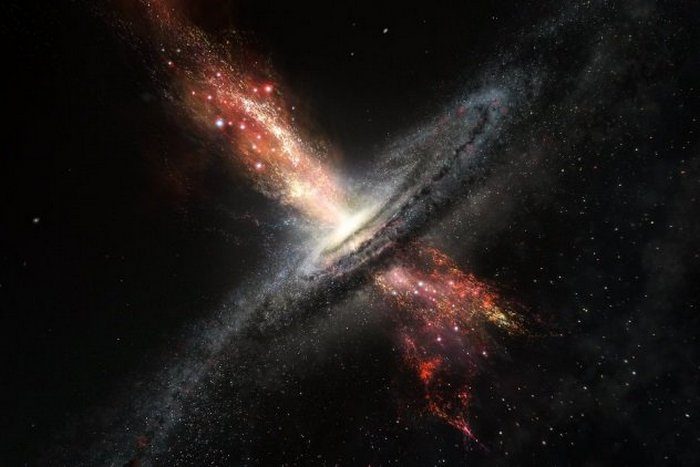 Черные дыры уничтожают все вокруг, но они могут и создавать что-то новое. Недавно ученые в первый раз заметили звезды, которые рождаются из большого оттока материи из сверхмассивной черной дыры в 600 миллионах световых лет от Земли. Обычно ученые считали, что звезды образуются из относительно «мирных» газовых облаков (своеобразных звездных яслей), но теперь исследователи подтвердили, что звезды также могут быть созданы с помощью более агрессивной среды черных дыр. Черная дыра, о которой идет речь, находится в пределах зоны двух сливающихся галактик, вместе известных как IRAS F23128-5919.