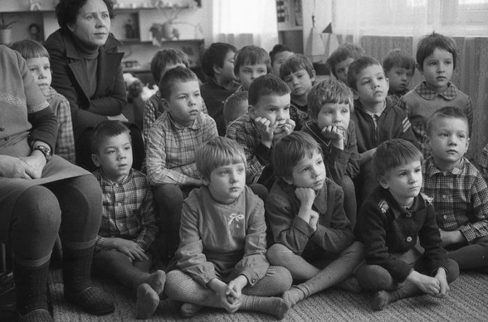 Просмотр похорон Генсека ЦК КПСС К.У. Черненко группой первоклассников. Детский Дом №5, Новокузнецк, СССР, 1985 год.