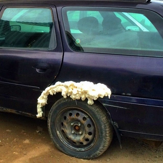 обклееные двери, капот и багажник, что на первых фото, это подлянка или месть, когда пена загоняется в щели и там застывает.