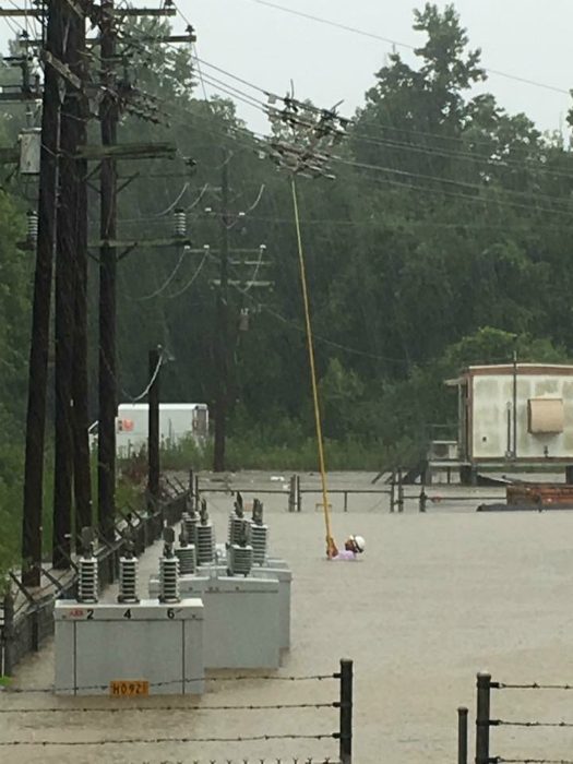 Она не дёргает, она им обмоталась. Вот электрик в воде — 100% самоубийца.