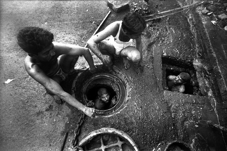 Фотограф Судхарак Олве решил запечатлеть нечеловеческие условия труда и повседневную жизнь уборщиков и ассенизаторов из индийского города Мумбаи. Безграмотных, темных и несчастных, но всё же людей, которые своим адским трудом делают наш мир немножко чище.