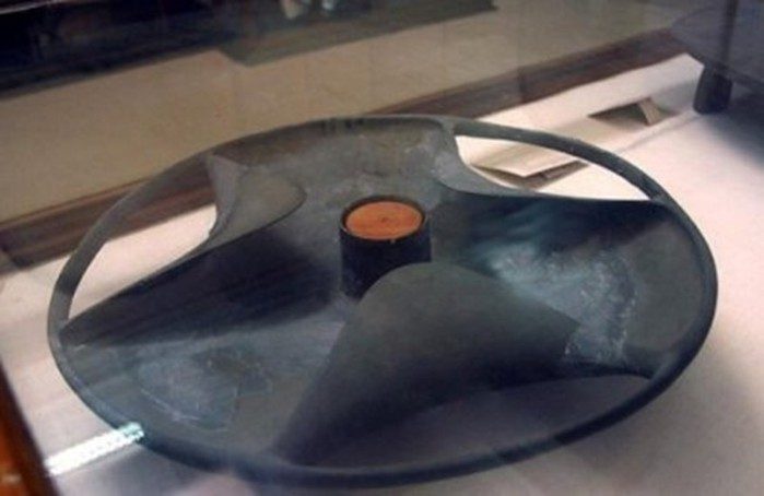 Артефакт представляет из себя правильную круглую тонкостенную каменную тарелку, изготовленную из мета-алеврита (метасилта в западной терминологии), с тремя тонкими загнутыми к центру наплывами края и небольшой цилиндрической втулкой посередине. В местах загиба лепестков края к центру окружность диска продолжается тонким ободом круглого сечения около сантиметра в диаметре. Диаметр составляет примерно 70см, форма окружности не идеальна. Эта тарелка вызывает ряд вопросов, как о непонятном назначении подобного предмета, так и о способе, с помощью которого она была изготовлена, поскольку аналогов не имеет.