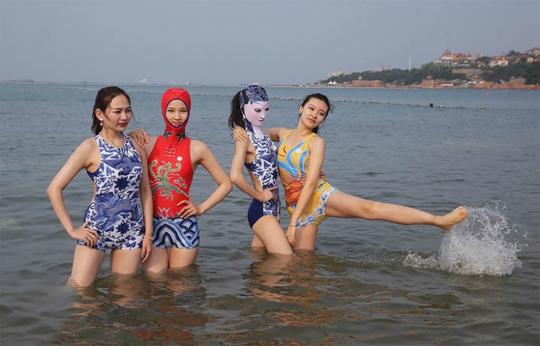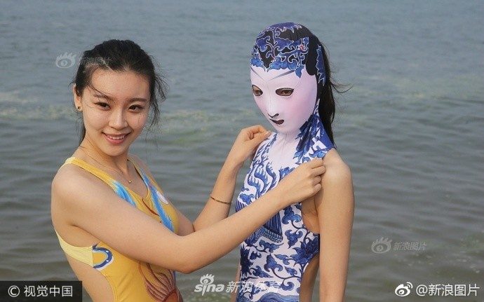 Уже не первый год главный тренд пляжной моды Китая – странная маска, которая отлично защищает лицо от солнечных лучей, но при этом делает человека похожим на Фантомаса.