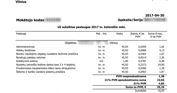 В Литве не существует налога на недвижимость. Но оказалось, что капремонт все таки есть Внизу скрин счета услуг за апрель Этот счет в 30 евро был довольно большой, так как меняли трубы и эта плата была включена в стоимость. Капремонт в месяц составил 1,38 евро