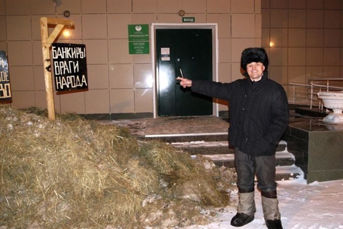 Кузнецкий ипальный банк! Куча навоза у банка, наверное в виде благодарности, счастливые клиенты?
