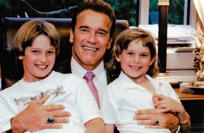 Семья Шварценеггеров дурачится в гостинице на Гавайских островах, 2000 год. Нашему младшему, Кристоферу, три года.