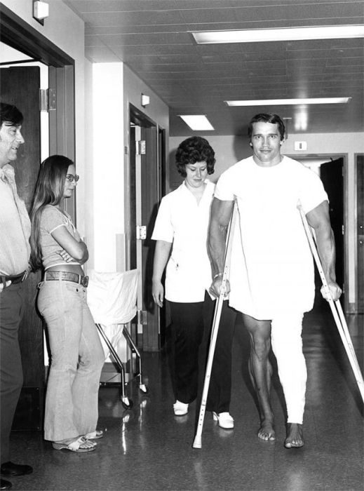 Я направляюсь в палату после серьезной операции на колене, проведенной в 1972 году, под наблюдением своей подруги Барбары Аутленд и Джо Уайдера. До первенства по культуризму оставалось всего несколько месяцев, и я понимал, что мне нужно будет очень быстро восстанавливать форму.