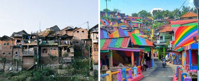 Запустил столь необычный проект Сламет Видодо, 54-летний директор школы. Его вдохновили три индонезийских города, которые также были окрашены в яркие цвета. Он превратил 232 деревенских дома в произведения искусства.