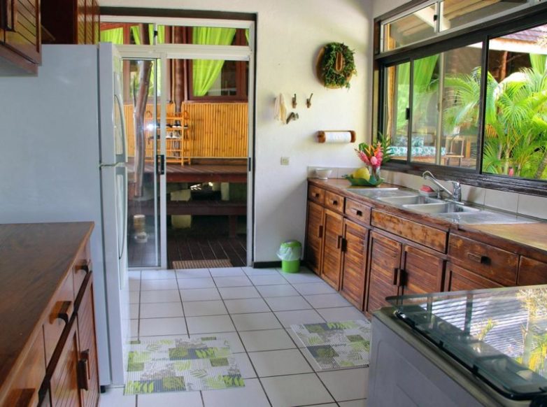 Дом построен предыдущими владельцами по проекту французского архитектора среди пышной тропической растительности и с него открывается вид через лагуну на близлежащие горы