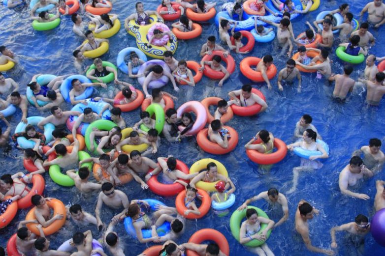 Как-то странно они купаются — большинство только нижнюю половину в воду засунули. Возможно, для китайцев это главная часть тела.