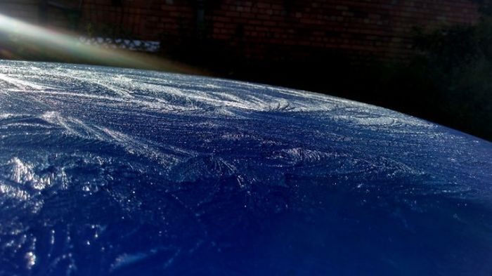 Иней на крыше автомобиля, похожий на вид Земли из космоса