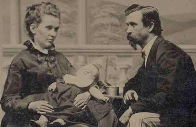 Эта немного разрисованная фотография, на которой семейная пара с ребенком, была объявлена также посмертной. Ребенок все еще находится на коленях матери, взгляды родителей устремлены мимо чада.