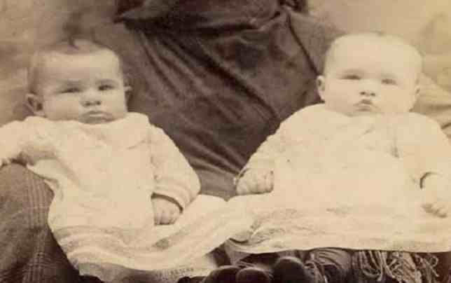 2. Реальное посмертное фото: Братья-близнецы, сидящие на диване