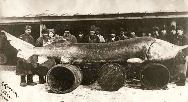 Наверное, самый большой улов из когда-либо сделанных в мире. Поймали такую рыбу в Казани в 1921 году.
