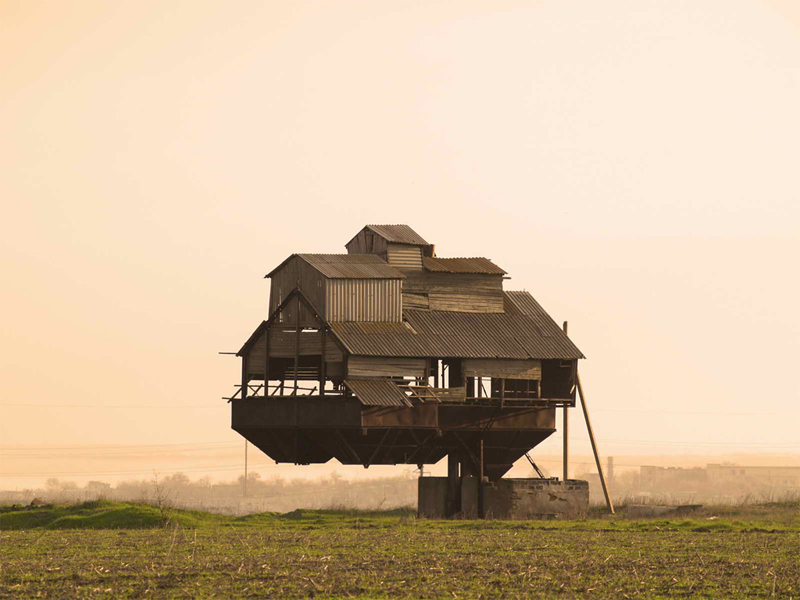 Этот, стоящий на единственной опоре, фермерский домик послужил бы прекрасной декорацией фантастического фильма. Считается, что это склад для излишков минеральных удобрений, но кажется, будто к его созданию приложили свою руку пришельцы.