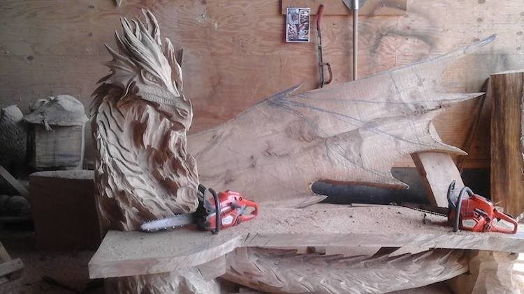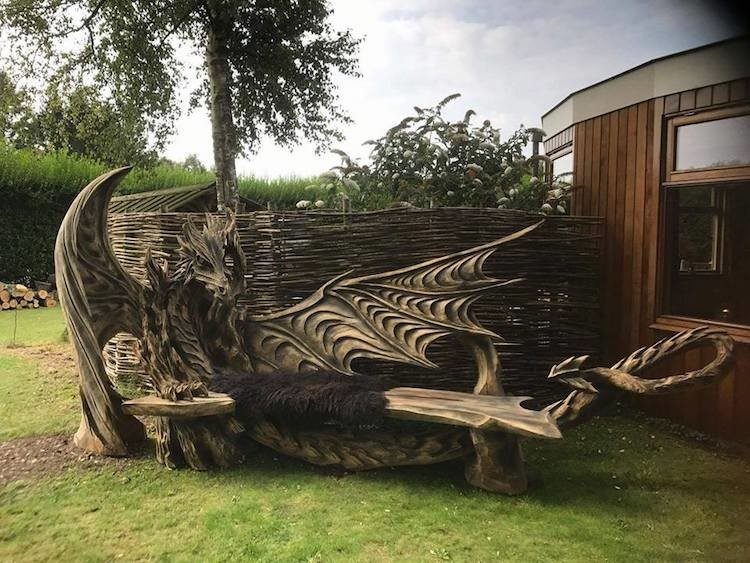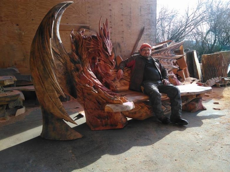 Одна из последних работ Лоскутова — невероятная скамья в виде дракона. Просто посмотрите, оно того стоит.