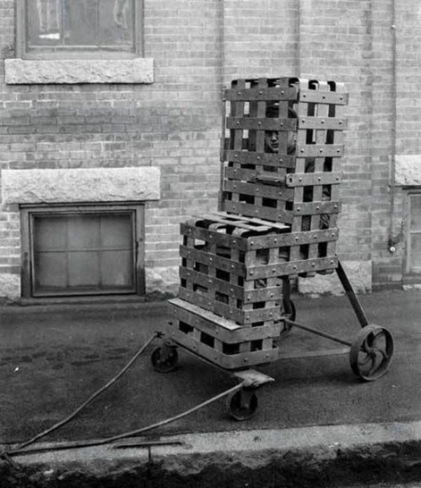 Стул для бродяги (Tramp chair), 1900–е годы, США «Стул для бродяги» – устройство для полной изоляции одного человека, используемое американской полицией, как легкая форма пытки и публичного унижения.