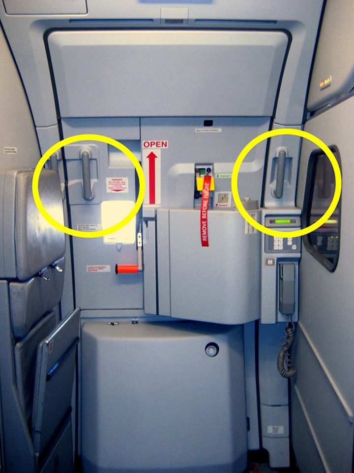 Чтобы угомонить паникующих во время ЧП пассажиров, достаточно именно за эти ручки распахнуть дверь.