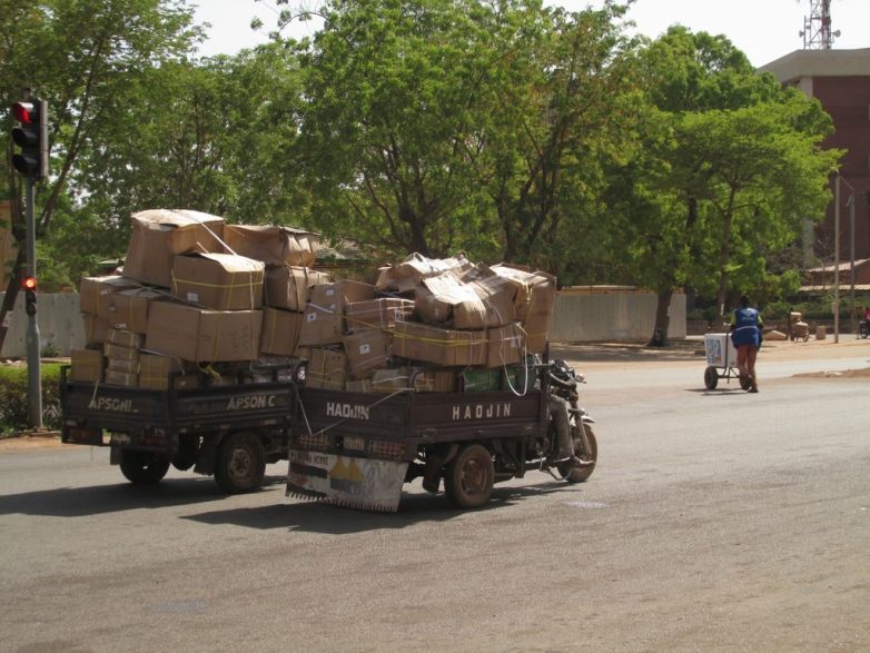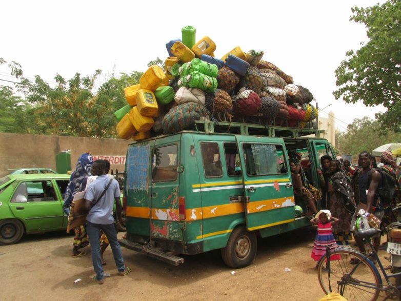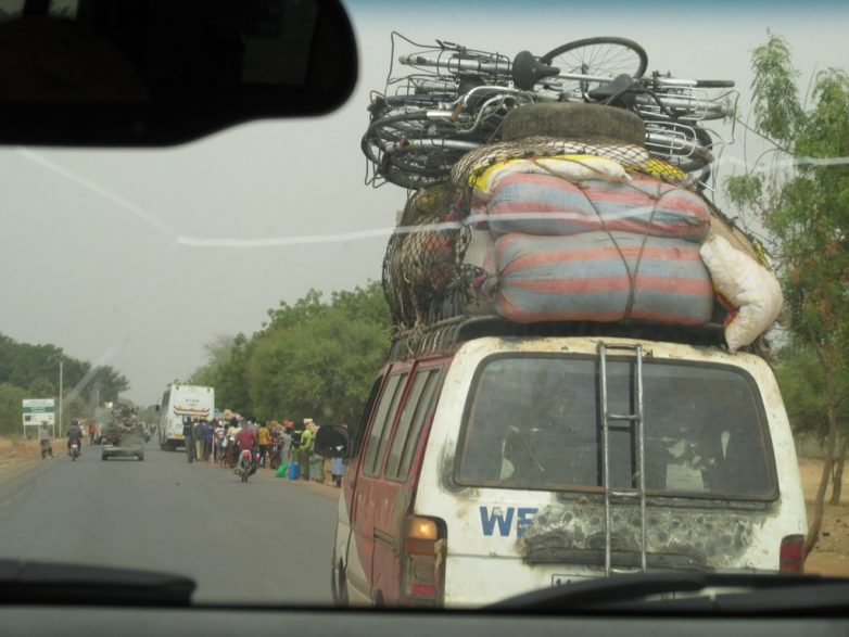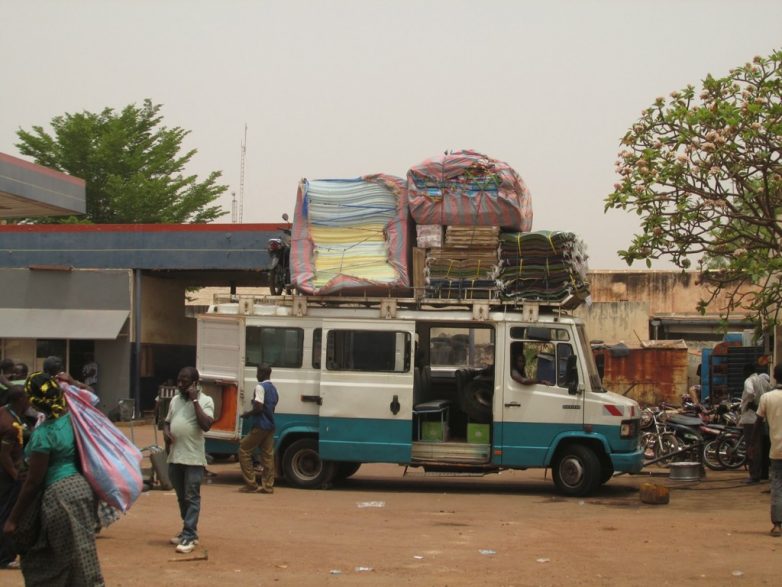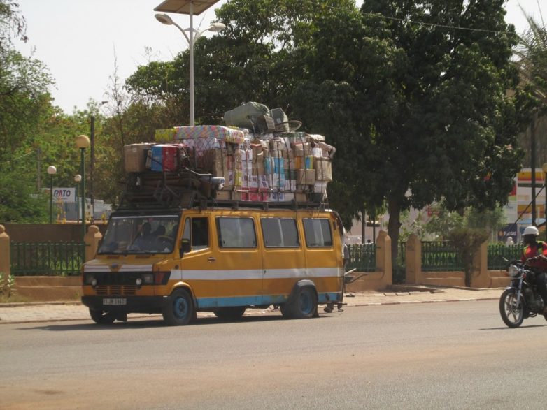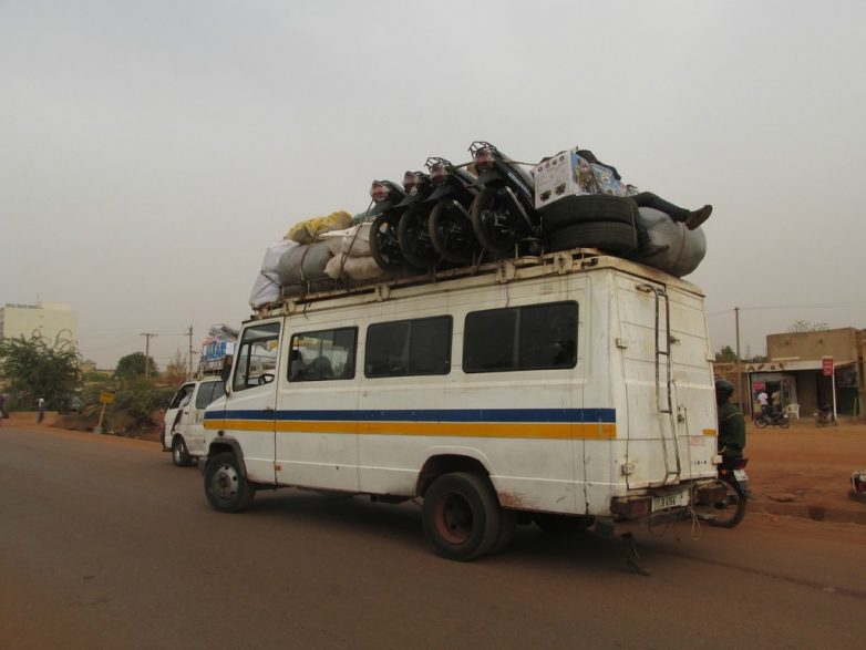 Обычные пассажирские маршрутки могут везти вообще что угодно. Помнится, в 90-е годы у нас на железных дорогах были так называемые «грузопассажирские поезда». Вот в Африке практически весь транспорт грузопассажирский. Отдельно фурами возить очень дорого. А так подкинул маршруточнику лишние 2-3 тысячи франков и можешь везти стройматериалы на крыше. Представьте, садитесь вы в маршрутку чтобы поехать из Владимира в Иваново, а у неё на крыше связка арматуры.