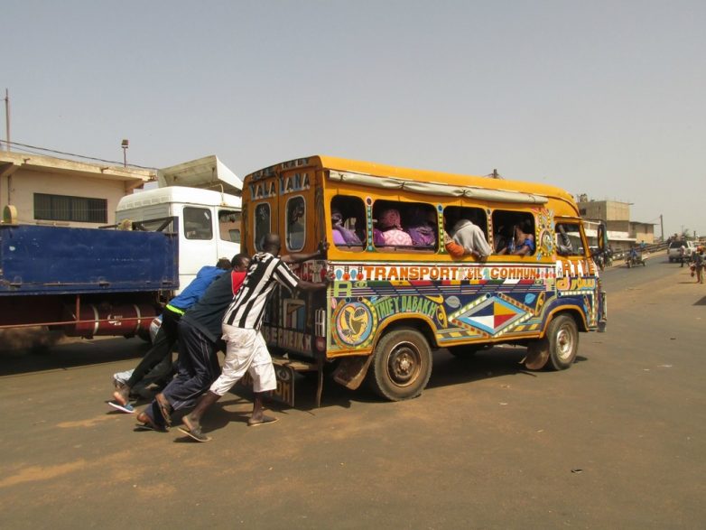 Кстати, интересный момент. Если вообще у вас есть что-то газелеподобное (неважно — пассажирская маршрутка, или грузовая), и вы едете по африканскому шоссе на нём, будьте готовы, что вас будут постоянно в деревнях тормозить местные жители и пытаться впарить какие-нибудь тюки, чтобы вы их куда-нибудь довезли по дороге. «Возьми вот мешок, выгрузишь на 14-м километре не доезжая Дакара у кафешки, там мой троюродный брат будет стоять, он возьмёт. Вот тебе его телефон и 3000 сефа». Я так ехал автостопом с одними ребятами, их постоянно так останавливали, что грузили, выгружали, а потом они пытались связаться и найтись с грузополучателями.