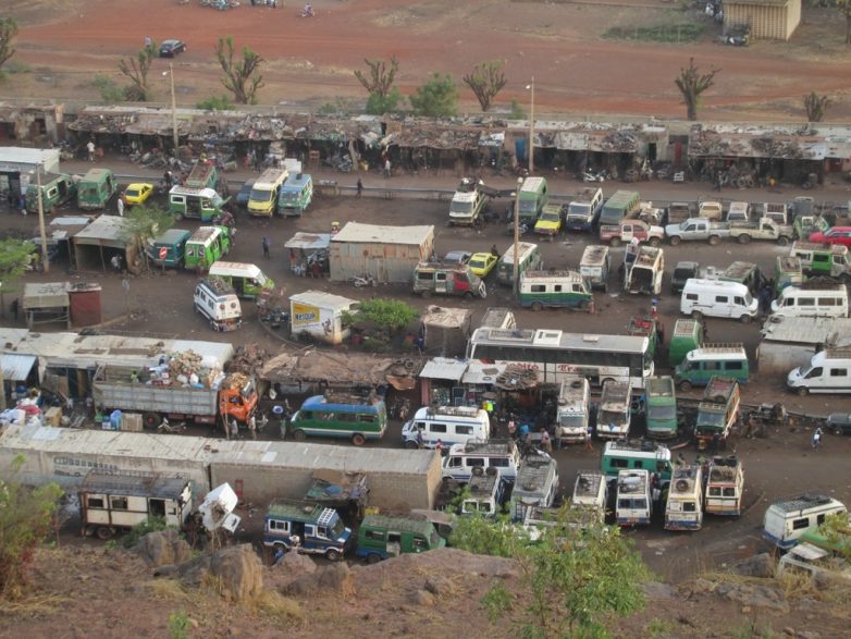 Международные автобусы «Дакар — Бамако». Редкие автобусы, которые современные, комфорт-класса. Но багажные отсеки загружаются всякими тюками, вёдрами, досками и мебелью. До сих пор не понимаю, как там наши вещи поместились.