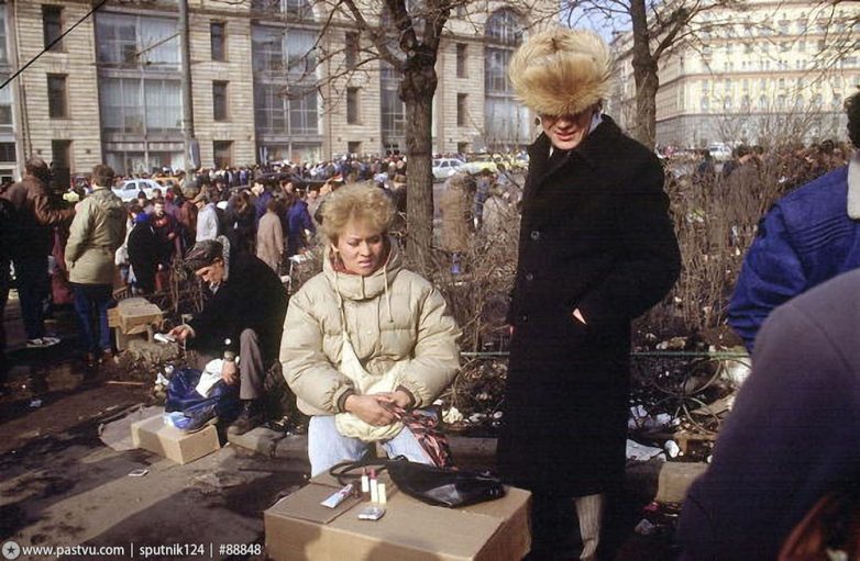 Одним из самых эпичных моментов во всей этой истории стал указ президента Бориса Ельцина «О свободе торговли», вступивший в силу 29 января и разрешавший частным лицам осуществлять торговлю «в любых удобных для них местах, за исключением проезжей части улиц, станций метрополитена и территорий, прилегающих к зданиям государственных органов власти и управления». По сути — везде. Огромное количество народу, уставшего от задержек по стремительно обесценившейся зарплате, устремилось на улицы с чем попало в руках.