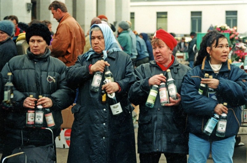 Подавляющее большинство торговых толп моментально образовалось в самом центре Москвы, особенно — у «Детского мира», возле Малого театра (до сих пор помню эту сюрреалистическую картину), ЦУМа, а также у любой станции метро. Спустя менее, чем год там понастроили многочисленные ларьки, в которых можно было купить всё что угодно, от бутылки водки и газового пистолета до слаксов (брюки такие) и казаков. Да-да, в одном из них я в начале 1993-го купил чуть ли ни на последние деньги бордовые казаки. Шик! Впрочем, забегаю вперёд. Основной контингент — пенсионеры, женщины бальзаковского возраста из бюджетной (а другой особо и не было) сферы и разудалые мужички помятого вида.