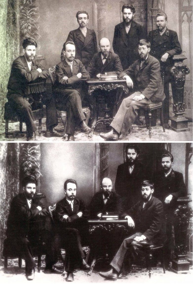 Члены петербургского «Союза борьбы за освобождение рабочего класса». На фотографии слева направо: стоят – А. Л. Малченко, П. К. Запорожец, А. А. Ванеев; сидят – В. В. Старков, Г. М. Кржижановский, В. И. Ульянов, Ю. О. Мартов. Фотограф: фотоателье Везенберг и К°, 1897 год. Вторая версия снимка 30-х годов: Малченко отсутствует. В 1929 году его арестовали по обвинению в контрреволюционной деятельности, а 1930 году расстреляли, после чего он «исчез» и с исторического снимка на 30 лет. В 1958 году Малченко реабилитировали и снова стали появляться фото с его изображением.