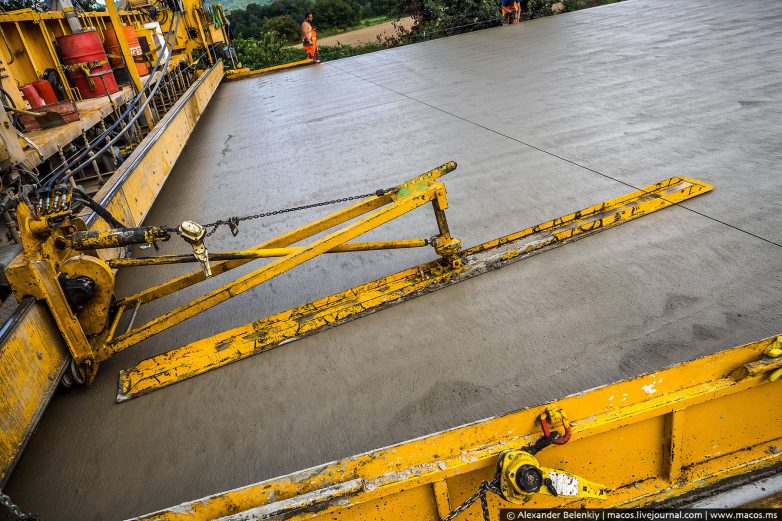 По схожей же технологии в мире сейчас строят взлётно-посадочные полосы аэропортов, в том числе новую ВПП в “Домодедово” и в самарском “Курумоч”. Кстати, в России тоже есть современные цементобетонные трассы, но их ничтожно мало, всего 2%, и то лишь отдельные участки дороги. Например, бетонную дорогу проложили к Дальневосточному Федеральному университету на острове Русский к прошедшему в прошлом году саммиту глав стран АТЭС.