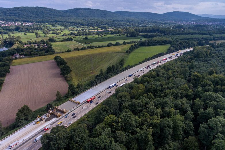 А теперь давайте посмотрим, как строят знаменитые автобаны на примере участка трассы А5 в районе Баден-Бадена.
