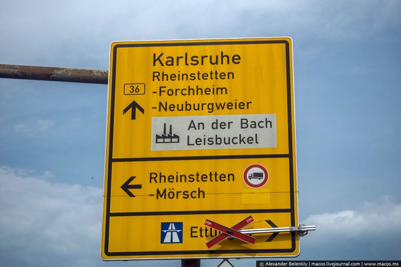 Умиляет, как немцы отмечают временно закрытый съезд на трассу на дорожном указателе.