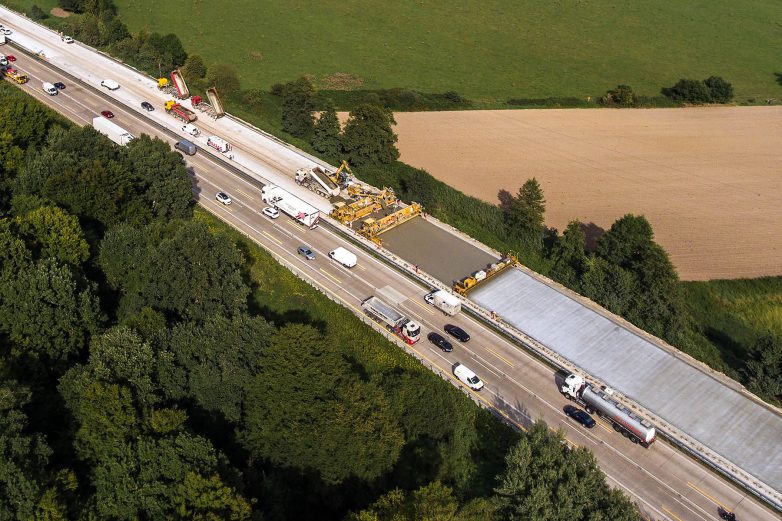 Типичный автобан в Германии можно представить в виде “бутерброда”, который состоит из морозостойкого слоя основания, щебеночно-песчаного основания 25 см, укреплённого цементом, покрытия из цементобетона толщиной 27 см. Сверху “соус” по вкусу заказчика — финишная обработка, например, слой бетона с обнажённым заполнителем (по-немецки waschbeton) или алмазная фрезеровка поверхности.