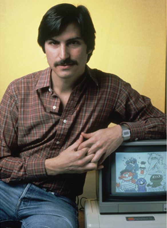 Со-основатель Apple, Стив Джобс позирует на фоне компьютера Apple II, 1977 год: