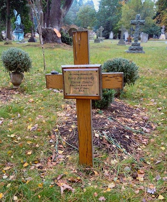 Березовского похоронили на кладбище «Бруквуд» в пригороде Лондона. Сейчас место погребения представляет собой заросший сорняками холмик с крестом. «Так выглядит могила Бориса Березовского через четыре года после его гибели», – подписал опубликованное фото Алексей Венедиктов.