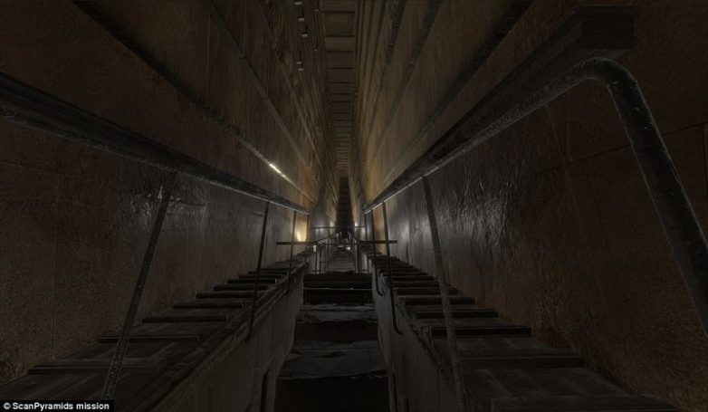 Исследователи утверждают, что пространство может находиться на уклоне, а это значит, что оно могло быть использовано для транспортировки огромных блоков в центр пирамиды, предполагают эксперты.