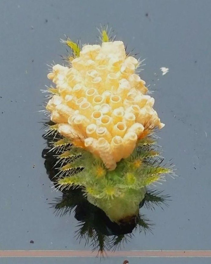 «Это гусеница Spiny Oak-Slug, покрытая яйцами паразитического насекомого — бракониды».