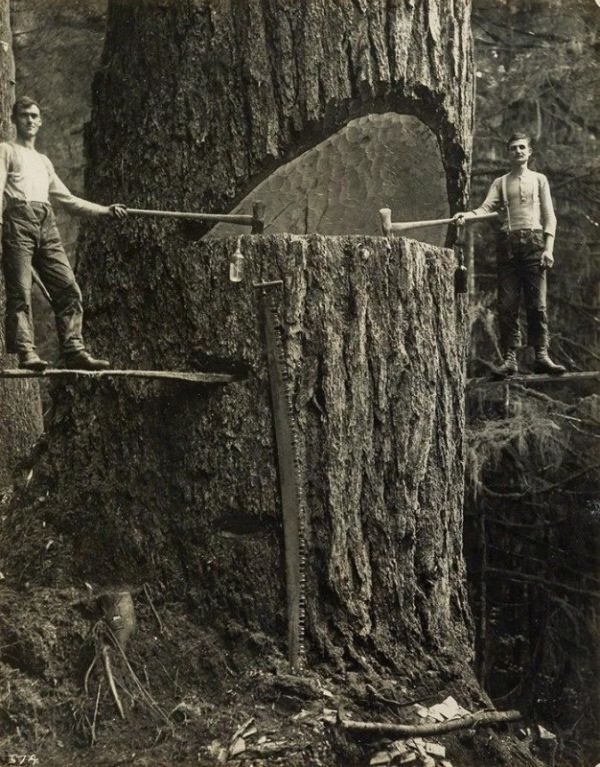 Два лесоруба и большое дерево, Тихоокеанский Северо-запад, 1915 г.