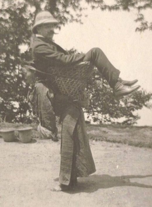 Колонизатор–купец использует местную женщину в качестве транспорта, 1903 год, Бенгалия, Британская Индия