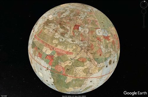 Это загадка, ведь эта карта одновременно очень точная, для ее создания потребовались серьезные данные по картографии и ее создатель явно знал, как выглядит наша планета из космоса если бы спутник делавший фотографии находился точно над Северным полюсом, но в то же время автор карты не знал, что не Солнце вращается вокруг Земли, а наоборот Земля вращается вокруг Солнца.