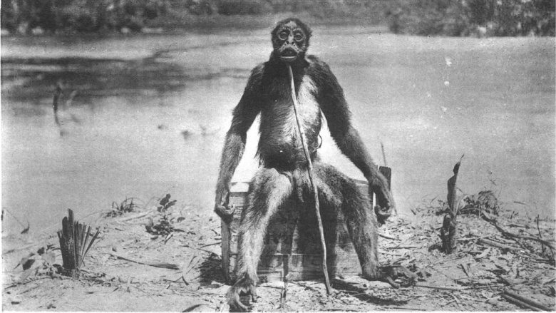 В 1920 году швейцарский геолог Франсуа Де Луа якобы столкнутся с парой агрессивных человекообразных обезьян. По словам геолога, он убил одну из них и посадил так, чтобы удобно было делать фотографию. По всей вероятности, на снимке хитрого швейцарца запечатлена обыкновенная коата, которая вовсе не отличается таким гигантским ростом.